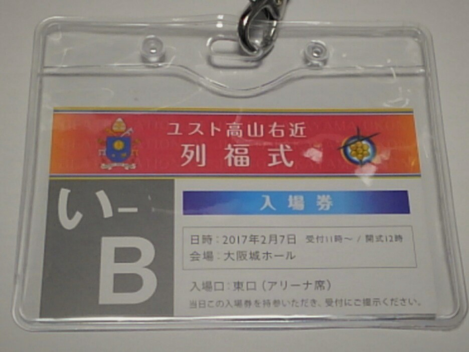 ついに、2月7日に行われる高山右近列福式の入場券が送られてまいりました。感無量です。